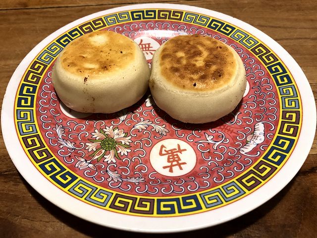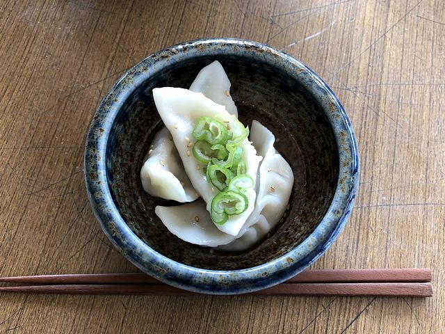 こちらは、一緒にいただいた品。もっちりしたやや厚めの皮に包まれた餡は、ジューシーで味付けがしっかり。肉と野菜のバランスも良く、しっかり効いたニンニクがアクセントになっていて、そのままでも十分美味しくいただけますね。