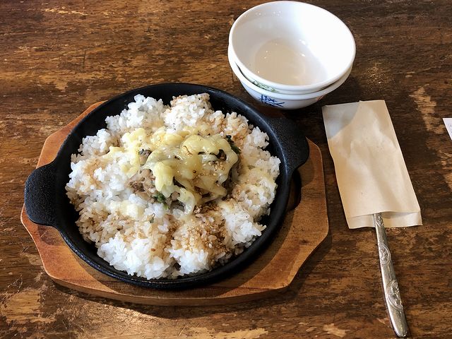 こちらは、一緒にいただいた品。珍しく家人がサイドメニューでご飯物をリクエストしたけど量の懸念を伝えてきたので、私も積極的にご相伴に預かることに。で、何も言わなくても取り皿を2人分持ってきてくれるのがさすがみの作さんなのですが、タレのかかったご飯は熱々の鉄板でおこげが出来、それだけでも間違いな味わいのところ、更にチーズのコクやまろやかさがとても効いてて、これが(鉄板焼きめしだけに)鉄板級の間違いなさです。