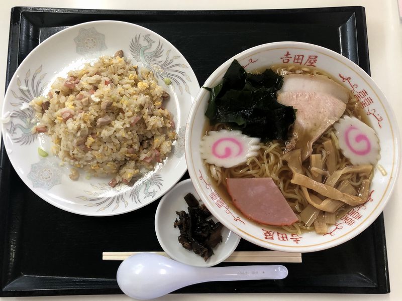 それでいただいたのは、AからDまであったランチメニューの中から、ラーメンとチャーハンがセットになったこちらの品を。ちなみにチャーハンは五目チャーハンの他、エビチャーハン、蟹チャーハンも選べました。