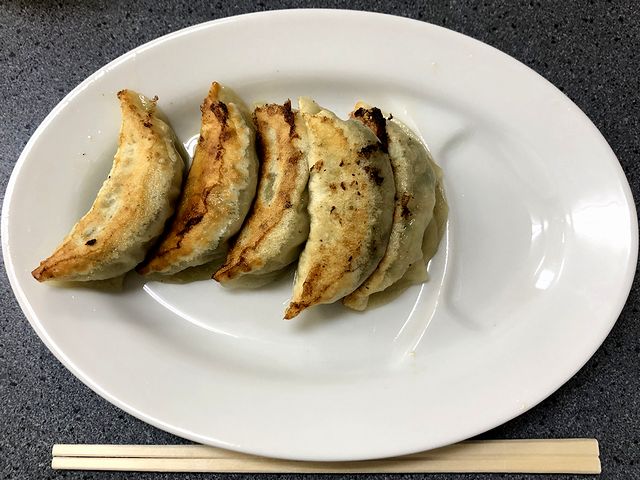 こちらは、一緒にいただいた品。っていうか、こちらのお店で餃子をいただくのって何気に初めてだったのですが、若干厚めのしっかりとした皮に包まれた餡はニンニクがバシっと強めに効いていて、なんていうか、日本の中華料理屋さんの肉餃子の味わい。昼間なので自重しましたが、これはビールと一緒にいただくと大層幸せになれそうですね。