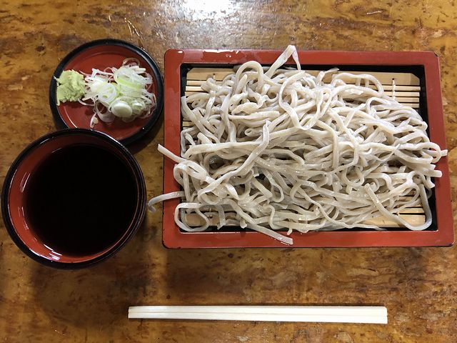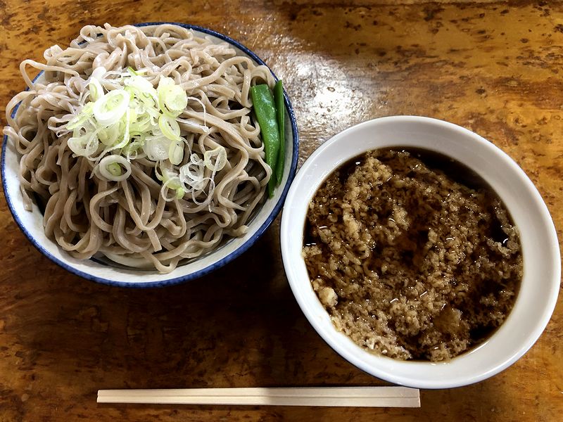 それで今回いただいたのが、以前、某ケンミンショーにも紹介されたという「あいもり」。ソバとウドンが一つの器に盛られたものを指すのですが、こちらのお店のはウドンの上にソバが盛ってある上下分割スタイルでした。(ちなみに以前いただいたことがあるさかえや野崎店は、ソバとウドンが縦分割してあるスタイルでした。)で、まずは上のソバを、とりあえずそのまま1本いってみたところ、弾力ある歯ごたえが強めな食感。また、写真だとほぼ隠れてしまっているウドンは、割り箸を軽く超える太さなのですが、長さもかなりのもので、モッチリした歯応えが強いですね。そして、ひたし・ひやしにしては若干濃い目の味付けのツユは、醤油が立って甘さ控えめな味わい。前回いただいた時は、寝かせたような風味がわりと強かった覚えがあるものの、今日のは熟成味という感じで。そこにほぼ衣(ちなみにタネは、イカの身が少量。)のかき揚げからコクと香ばしさが加われば、ほんと、味がいい感じにまとまります。あとは、ソバとウドンをツユに浸けて、ひたすらズルズル。、大盛り相当、いや、それ以上かもしれないボリュームで、相当お腹いっぱいになってしまったのですが、最後はトロッとした蕎麦湯もしっかりと堪能しました。