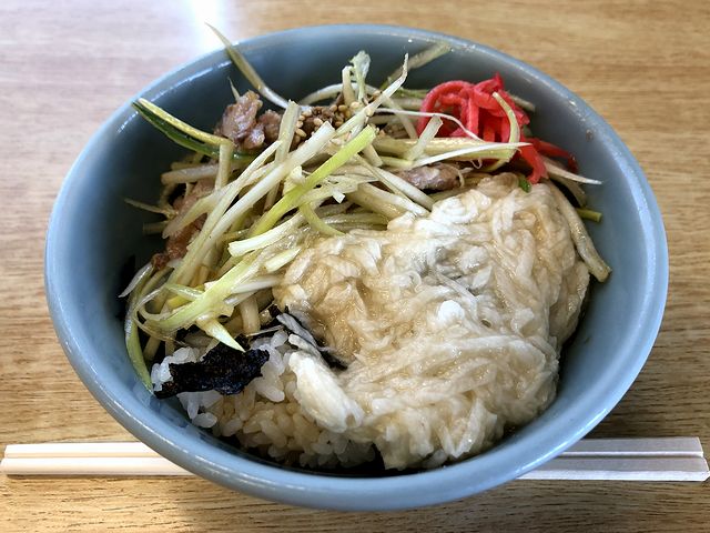 こちらは、一緒にいただいた品。ご飯も食べたかったし、今日のラーメンにはあのネギが乗ってないし、とろろも好きなので、食べ過ぎだと頭ではわかっていても、つい、食券のボタンを押してしまったんです。