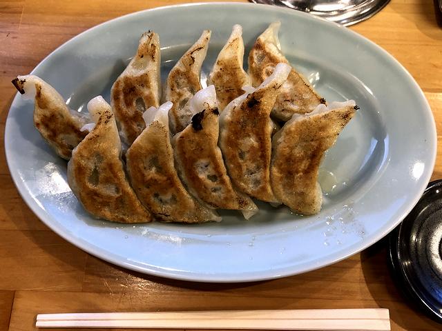 つけ麺を並盛にしたのは、一緒にこの餃子をいただきたかったため。といってもこの10個ではなく5個250円の方をいこうと思っていたのですが。で、まずはそのまま、次にお酢+ラー油、最後にお酢+ラー油+醤油と味を変えつついただくのですが、皮の焼き目はサっクサクで、中の餡は野菜多めながらバランスの取れたさっぱり目の味わいで、これが何個でもいけそうな按配。結局、同行者と共に(気持ち的には)軽く食べ尽くしてしまったという。