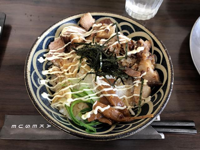 こちらは、一緒にいただいた品。写真だと片寄っているけどチャーシューはかなりの量が載っていて、米が足らなくなるほどでした。またタレは、甘じょっば系の味付けで、そこにマヨネーズがアクセントになっています。