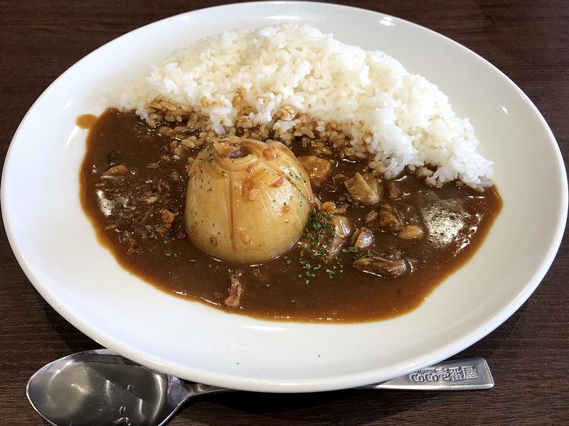 こちらは、同行の家人がいただいた品。コンソメで煮込んだタマネギがドドンと鎮座する何とも「映え」る見た目ですが、お味の方もこれがなかなかで、タマネギは甘味があり、それとトロッとした食感が、ビーフカレーとマッチして、これが、もう。家人もたいそう気に入ったようでした。