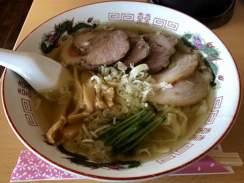 それで今回私がいただいたのは、こちらの品。まず始めにスープからいってみたところ、鶏の味が濃いめに出ており、同時に感じるまろやかさは昆布からでしょうか。それと煮干しも使われているとのことですが、その主張は強くなく、味わいに深みを与えているよう。全体的にアッサリしているけど、旨味はしっかりと感じられますね。そこに合わせるタレは「胡麻塩ダレ」とのことですが、胡麻は声高に主張せず、味加減は丁度良いです。また手打ちらしいフォルムの麺は、ピロピロっとした口当たりで、食感も若干柔らかめ。個人的には、柔らかい麺も嫌いじゃないので、これはこれで良い感じだな、と。そしてチャーシュー麺だけあって2種類のチャーシューが載っているのですが、どちらも柔らかく調理され、モモ肉のは肉肉しく、バラ肉のは脂の味を堪能できました。それとメンマも柔らかく、味加減は適度です。