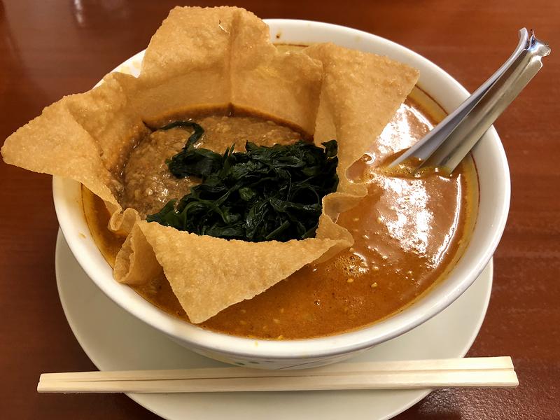 それであいている席に座ったところ、壁に「夏季限定復刻激辛メニュー」というポスターが貼られているのが目に入りました。で、その中の担々麺が、以前の白ゴマバージョンに戻っているのを発見したので、久しぶりにいただいてみることに。また折角なので、辛さ増しを激辛でお願いしました。で、待っている間にこのブログの過去記事で確認したところ、2年程前に、白ゴマバージョンの担々麺を激辛で頼んでいたという。しかもその2年前も同じものを。2年おきに食べさせる何かがあるのですかね。