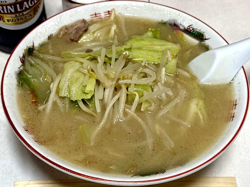 そうこうしているうちうち、メインのラーメンが登場。いつの間にか、卵黄入りのラーメンが佐賀ラーメンの代表みたくなった感があります(勿論こちらのお店にもあります)が、事前に調べた時に一番食べたいと思ったのが、この、野菜ラーメンでした。