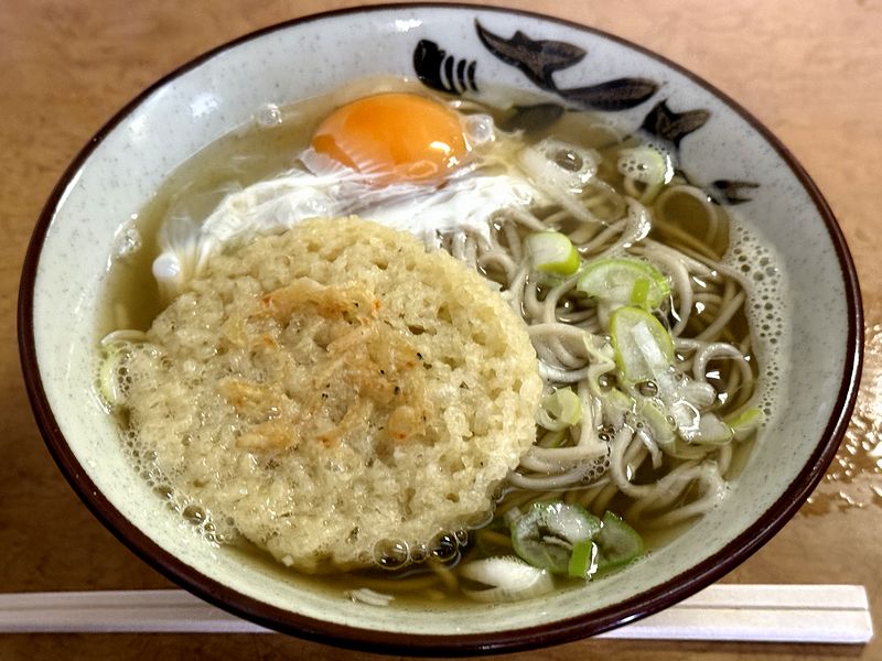また天ぷらは、あげ玉を固めたような衣がメインの、ツユに溶けるタイプ。これも関西っぽい仕様だと感じます。で、その中央部にまとまってセットされた、アミエビの香りがアクセント。