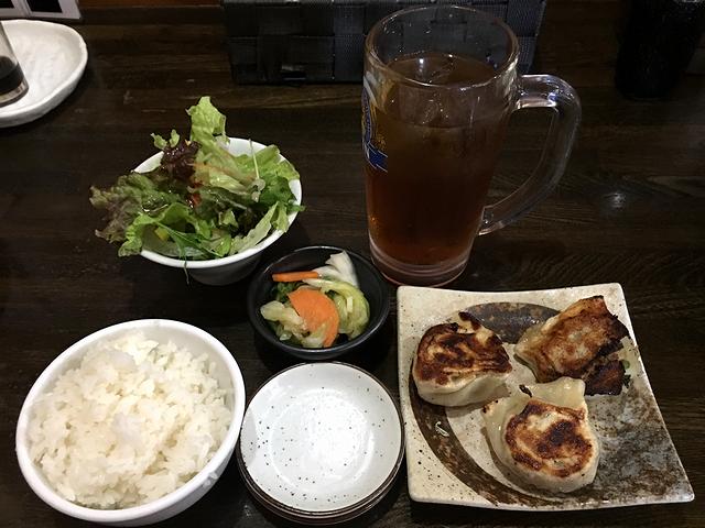 こちらのセットは、前回もいただいた品で、今回も温泉卵をミニサラダに変えて貰いました。で、密度感のある餃子は今回若干ウェルダンな焼き加減だけど、これもまた。あと、冷たくてパリパリのミニサラダ、美味しいご飯、添えられた浅漬けまで隙の無い仕上がりです。