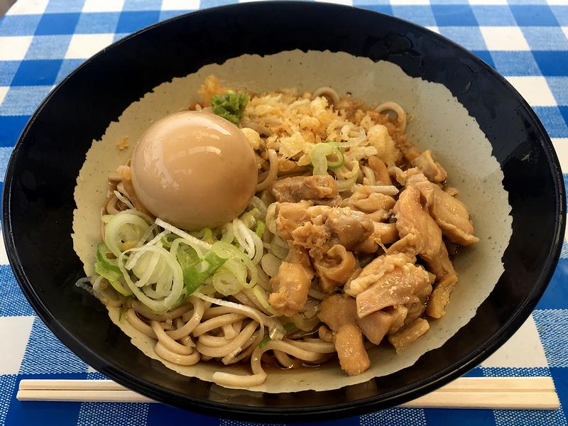 それで今回いただいたのが、とりそばの冷やし。この日は、日差しが強くかなり暑かったもので。で、冷たくなったソバは、茹で麺なれどプリっとした歯応えがあり、そこに甘味の少ないキリっとした味の濃いツユが絡んで、これがもう。柚子胡椒を薬味に、合間に歯応えのある鶏肉や追加した煮たまごを囓りながら啜り込めば、ほんと、これは良いですねぇ。