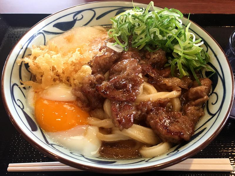 それで今回は、期間限定メニューとして以前登場し(ちなみに昨年、別のお店でいただいています。)、好評につき今年も復活したという牛とろ玉うどんを大盛りで。ちなみに、冷たいものと温かいものから選べたのですが、なんとなく温かい方でお願い。で、注文すると割り下で大ぶりな牛肉が煮焼き開始され、それがウドンの上に豪快に載せられました。