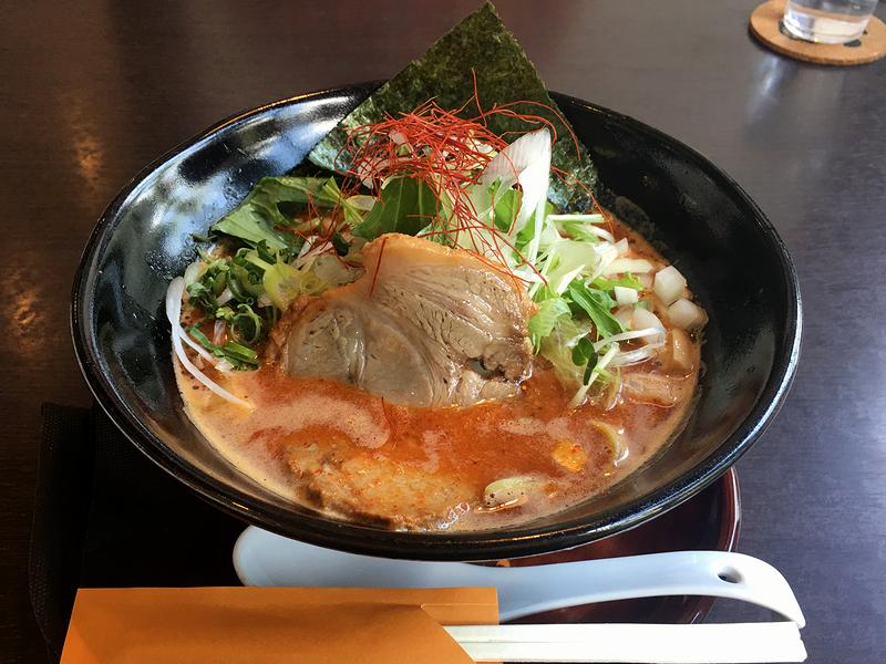 そしてその後、注文した品々が続々と登場したのですが、まずは、私が頼んだこちらの品から。ちなみに、.赤玉パンチ(ラーメン・つけ麺)については、だいぶ前に宇都宮の「らー麺彩羅」さんでいただいた時にお気に入りとなった品で、そのお店が残念ながら閉店してしまった後、こちらのお店で(頭にFが付いて)提供が開始されて以来、是非一度いただきたいと思っていたところでした。で、今回は、ノーマルの.赤玉パンチらー麺でも良かったのですが、こちらのお店に移ってからラインナップに加わった『MISO』を。