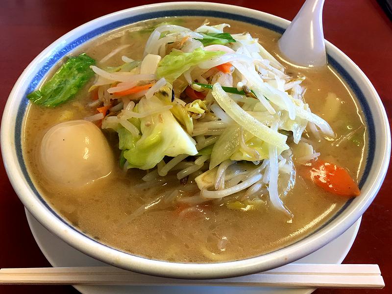 それで今回いただいたのが、醤油味の味玉野菜ラーメン。ベースとなるスープは、なんかお伺いする度に濃度が増しているようにも感じられる白湯豚骨なのですが、そこに肉野菜炒めの旨味と油感も加わってて、かなりコッテリ目な印象。もっとも、このところいただいた野菜ラーメンは辛し味噌味が続いており久しぶりの醤油味ということで、そのあたりのコッテリ感を、余計に感じたのかもしれませんが。あとは、これまで何度もいただいているので過去の記事と同じなってしまうのですが、自社製麺される麺は中太ストレートタイプでシコ感が強い口当たりに加え、結構な長さがあります。そして具の肉野菜炒めはシャキっと感を残した仕上がりで、量もたっぷり。あと味玉は、黄身がトロトロの半熟タイプで、濃すぎない味付けは醤油味のラーメンだとより相性が良く感じますね。