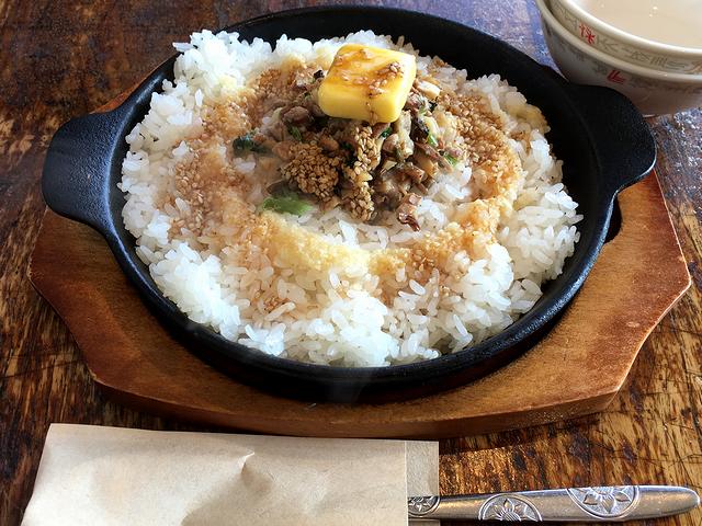 こちらは、一緒にいただいた品。元々、こちらの鉄板焼きめしは熱々の鉄鍋で焦げ目が付いたところの香ばしさが溜まらないのですが、そこにニンニクとバターが加わるって、更に美味しくなるに決まっているじゃありませんか。
