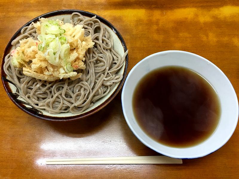 それでその大冷し。ソリッドな食感のやや平たいソバに、甘さ控えめのツユ、そして衣が多めのかき揚げと、お味の方もいつものとおり。ツユにかき揚げを投入し、それをソバと交互に、時には同時に口に入れ、ズルズルっと。それにしても、こういったソバをいただく時って、何故か、一刻を争うような食べ方になってしまうんですよね。なんていうか、食べることを、喉の奥から欲するというか。なのであっという間に完食して、そば湯をいただく頃にようやくホっとするというか。