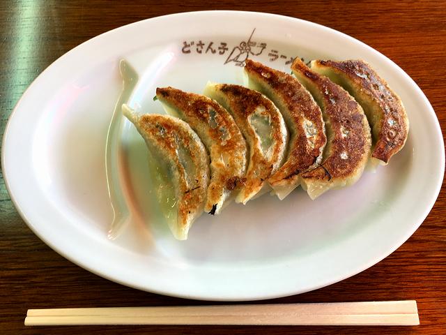 こちらは、一緒にいただいた品。焼き方が良いため厚めの皮の焼き目はカリサクっ、他はモチっとしていて、中の餡は適度な密度感としっとり感。ラーメン屋の餃子、ザ・ベーシックというか、ザ・トラディショナルというか。