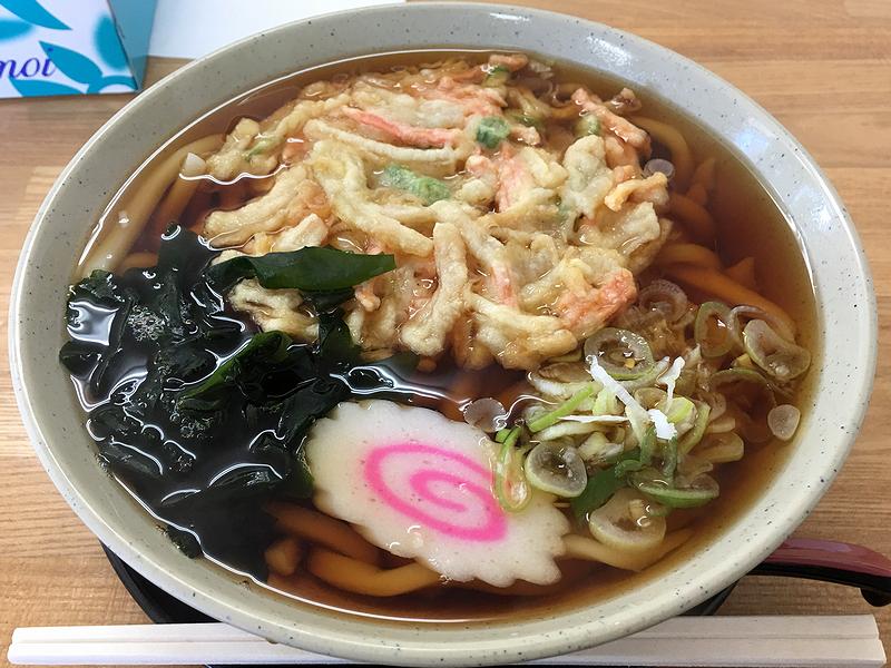 注文時、つい大盛り(100円増し)にしてしまったのですが、お陰で丼がちょっと大きいサイズ感。それで早速ツユからいってみたところ、そのツユも政木屋食品さんの業務用商品でしょうか?(違っていたら申し訳ない。)昆布っぽい香りがわりと全面に来て、甘味控えめ醤油濃いめの味付け。個人的にはこの味の濃さ、嫌いじゃないです。またウドンは茹で麺でしょうか?柔らか目の食感が個人的にはヒット。大盛りにしたことで、量的にも満足できました。そしてかき揚げは、タネも含めてソフトで、ツユと馴染むけど溶けないタイプ。ちなみにタネは野菜のみで、タマネギの外、ニンジンとサヤインゲンだったかと。あとワカメとナルトが、個人的には嬉しいです。