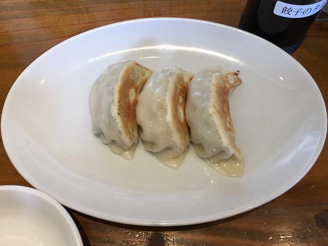 こちらは、一緒にいただいたもの。一凛さんの餃子はかなり久しぶりなのですが、これもまた、シンプルイズベスト。(って、餃子という食べ物自体が、ごちゃごちゃと色んな要素を入れても美味しくなるとは思いませんが。)確か自家製の皮は、確かな存在感。焼き目はカリっ、他はムチっとした食感で全体を包み込み、中の餡はざく切りキャベツと共に肉っ気もちゃんとあって、適度なジューシーさも。また、個人的には何も付けずとも全然いけてしまうお味なのですが、添えられたタレを付けてみたところ、味がビシっと決まったような。ちなみに、今回は3個にしてしまいましたが、これは5個(390円)でも良かったかもしれません。