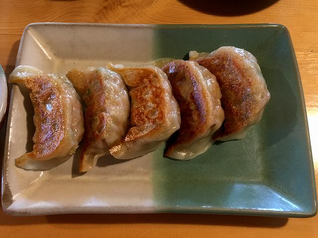 ラーメンをいただいていると、最後にこちらが登場。で、こちらの餃子は、厚めで焼き目シャクモチっとした皮に包まれる餡は、ザク切りの野菜がたっぷりと。お陰でボリューミーで食べ応えもあるんですが、全体の印象はアッサリめというか。