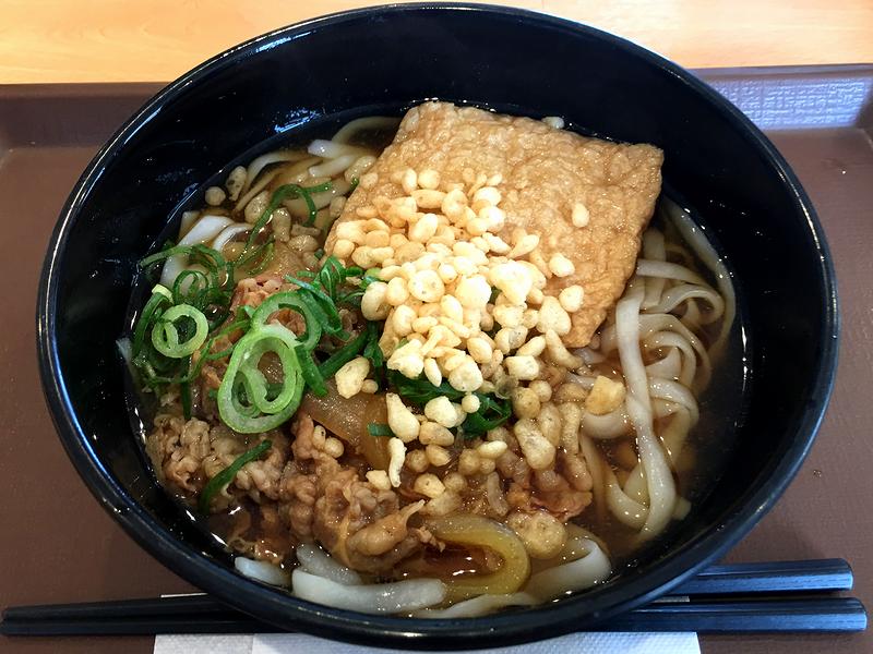 それで、今回はどちらをいただこうか一瞬迷ったのですが、とりあえず和風なこちらの品を。ちなみに、こちら一食分のカロリーは384kcal、糖質量22.0gと、かなり低めな数値になっていますね。(気になる方はすき家さんの公式サイトで、牛丼のカロリーを調べて比較していただければと。)で、注文してから程なくして登場。見た目はきつねうどんに牛肉が加わったようなもので、このようなビジュアルの品がすき家さんでいただけるということに多少戸惑いつつも、丼に顔を近づけたところ、和風な出汁のなんとも良い香りが。後で公式サイトで確認したところカツオ、昆布、サバの出汁だそうで。また味付けも程よく、良く出来た立ち食いうどんのつゆといった趣です。そして、ある意味主役なコンニャク麺ですが、米粉をブレンドしてあるとのこと。太さは細めのウドン並で、白っぽい見た目もウドンライクなのですが、クニャっとした食感はやっぱりコンニャクだなぁ、と。ですが、個人的に驚いたのは、コンニャク特有の臭いが気にならないこと。最近自宅ではこの手の食べ物をよくいただくんですが、食感よりも特有の臭いの方が気になってしまうので。あと具の油揚げは、厚みがあって結構な存在感。薄味の味付けも悪くないです。そして牛肉は、当たり前ですが、まさしくすき家の牛丼の具。個人的にすき家さんの牛丼は、牛肉の臭いが、多少気になる時があるのですが、こちらは出汁の香りと相まって良いアクセントに感じます。