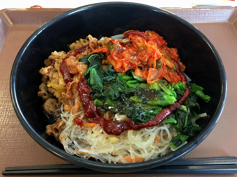 この日は週末にもかかわらず一人で食事をする事になっていたので、国道4号線を走ってこちらのお店まで。で、(相変わらずたまにラーメンなどではっちゃける以外は)ダイエットのまねごとをしているこの頃なので、お目当ては牛丼ではなく先日もいただいたロカボ牛麺なのですが、今回はビビン麺の方をいただいてみました。