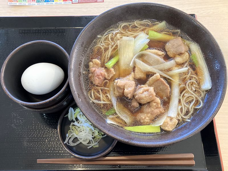 それで今回は先述の通り精神的余裕がなかったので、間違いが無いようにと、先日いただいた鴨南蛮そばをチョイス。大盛にして生玉子まで付けてしまいました。