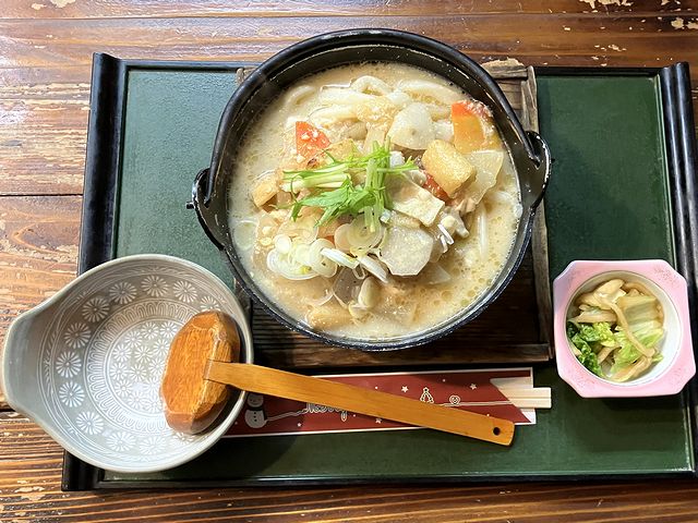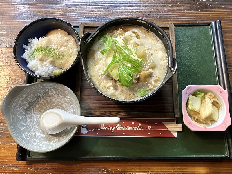 それで、今回も家人と共にお伺いして、家人はけんちんうどんの単品を、私は定番のセットメニューとなっているけんちんうどんとミニとろろめしのセットをお願いしました。