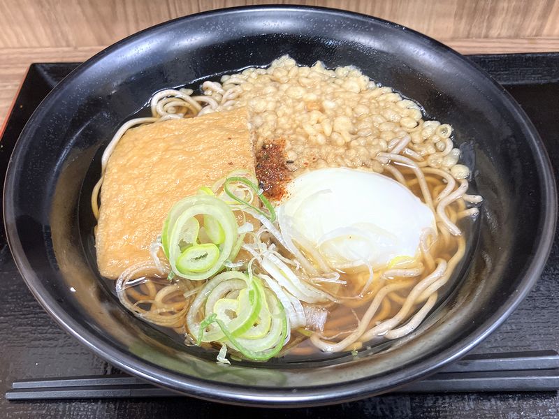 あと、具で甘辛い油揚げが入ってる影響を受け、後半はツユの味が更に甘くなるように感じますが、逆に朝限定メニューだけあって、朝の糖分補給にぴったり。もちろん、揚げ玉や半熟卵との相性も、悪い筈がありません。