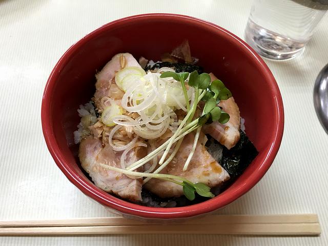 今回、ラーメンを大盛りにしなかったのは、壁に貼られたこちらの品が目に入ったので。確か、こちらのお店でチャーシュー丼の類いをいただくのは初めてだった気がします。で、そのお味ですが、ホロトロのチャーシューはご飯に良く馴染み、更には定番の海苔とネギ、そしてピリっとした貝割れの他、鰹節がとても良いアクセントというか、チャーシューと鰹節の組み合わせが、こんなに合うとは。それと、強すぎない柚子の風味も心地よく、これはなかなかに素晴らしいサイドメニューでした。