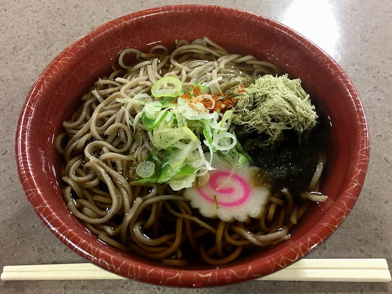 なので、個人的に良くいただく天ぷらの載った系ではなく、優しそうなこちらの品をチョイス。当地らしく醤油が濃いめながらも良い塩加減のつゆに、とろろ昆布が風味とじんわりとした旨味をプラスして、何とも良い感じですね。そこに若干モソっとした(でも、個人的には好きな)食感の茹で麺が、良く合います。