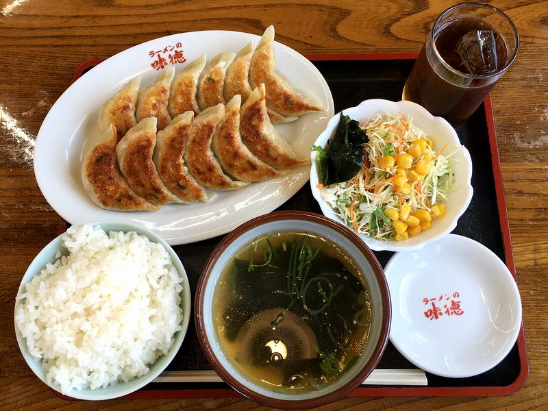 それでお店に着いたのは午前11時30分の開店時間直後。さすがに店内は空いていましたが、その後徐々にお客さんがという感じで。で、何をいただこうかと味噌、醤油、塩、九州(豚骨)、そしてカレーにあんかけ、オススメの手作り餃子の定食と豊富なメニューを見て迷ったのですが、同行者共々以下のものをお願いしました。