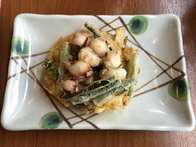 こちらは、珍しかったので、ついお皿に取ったもの。ニンニクの茎とタコのかき揚げで、味的にももちろんですが、食感的にもなかなかに面白い取り合わせでした。ちなみに、某丸亀さんのように卓上にソースは置いてなかったのですが、天ぷらは生醤油で食べる栃木県民なら問題ないですね。