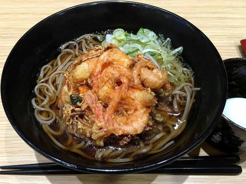 海老かき揚げそば 630円 + 温泉玉子 80円