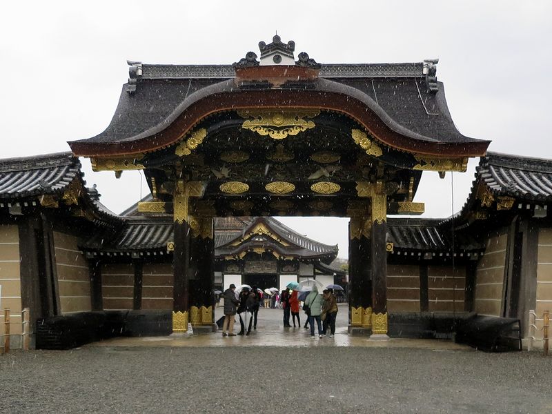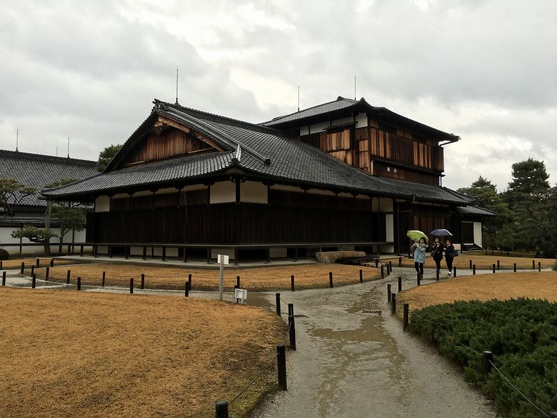 それで、詳細については後日ゆっくり書きたいので取り急ぎ感想だけ記しておこうと思うのですが、とにかく、どこを見てもいちいち凄いというか。たとえば、内部が一般公開されている二の丸御殿。そのうちの一部が重要文化財に指定されている障壁画が有名ですが、鴨居など建物のちょっとしたディテールがよくよく見ると凄かったりするんですよね。また、別の場所では、ふと見上げた門に精巧な透かし彫りが施してあったり、瓦に凝った意匠が取り付けられていたりとか。ほんと、目に入ってくるものをよく見ただけで、いろいろな発見がありました。でも、こちらに到着した時に降っていた雨が途中から本降りになり、更には結構非道い降りになったので、順路の最後のほうはあまりゆっくりと見ずに、日本100名城スタンプラリーのスタンプを貰ったら、さっさと撤収してしまったのはちょっと勿体なかったというか。でも、京都には、今後の人生でまた来る機会もあるとは思いますので、そのついでにでも寄れたら良いな、なんて。