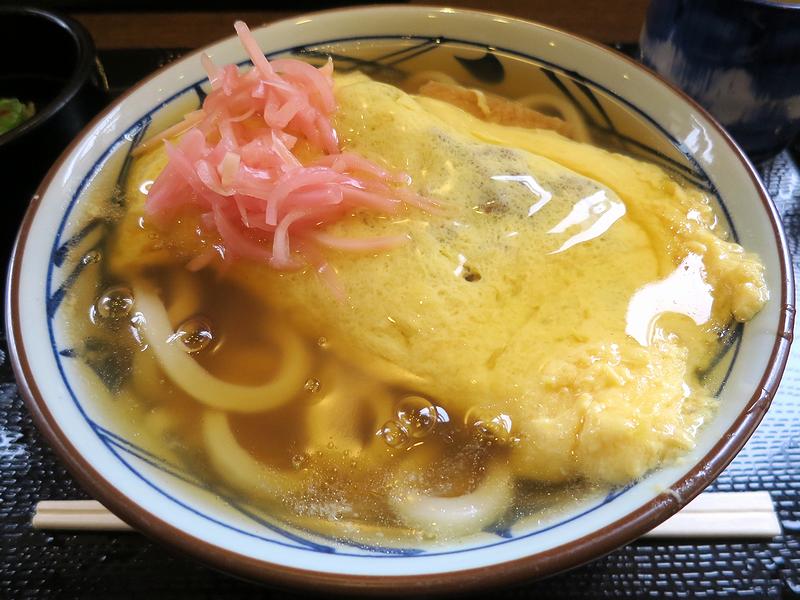 それでいただいたのが、期間限定メニューであるこちらの品で、これがかなり凝ってるというか、餡掛けの掛かったうどんの上に、牛とお揚げの甘辛煮が包まれただし巻き玉子が載っているという。それで注文時、「(注文ごと)にだし巻き玉子を作るのでお席までお持ちします」と、提供する方も、特にピーク時とか大変そうだなぁ、なんて余計なことを考えてしまったのですが、時間帯のせいか店員さんが慣れてらっしゃるのかさほど待たずに登場しました。で、早速いただいてみるのですが、まずは玉子を崩さずに餡掛け部分のうどんをいってみると、ダシの香りが良く、トロッとした餡がうどんに絡んでそれだけで十分美味しいというか。で、そこに玉子をちょっとだけ崩していただくと、中から牛肉とお揚げがこんにちはするのですが、これが結構甘味が強いというか、以前いただいた牛盛ぶっかけのお肉程度の甘味だと勝手に想像していたのですが、それよりも数段甘いです。また、玉子の上に載っている、注文時に大丈夫か訊かれた甘酢しょうがの甘味と相まって、具は甘々という感じもするのですが、その後でしょうがのさっぱり感も加わってきます。そして、これらがいただいているうちに混ざり合って、なかなかに面白い味になっていました。