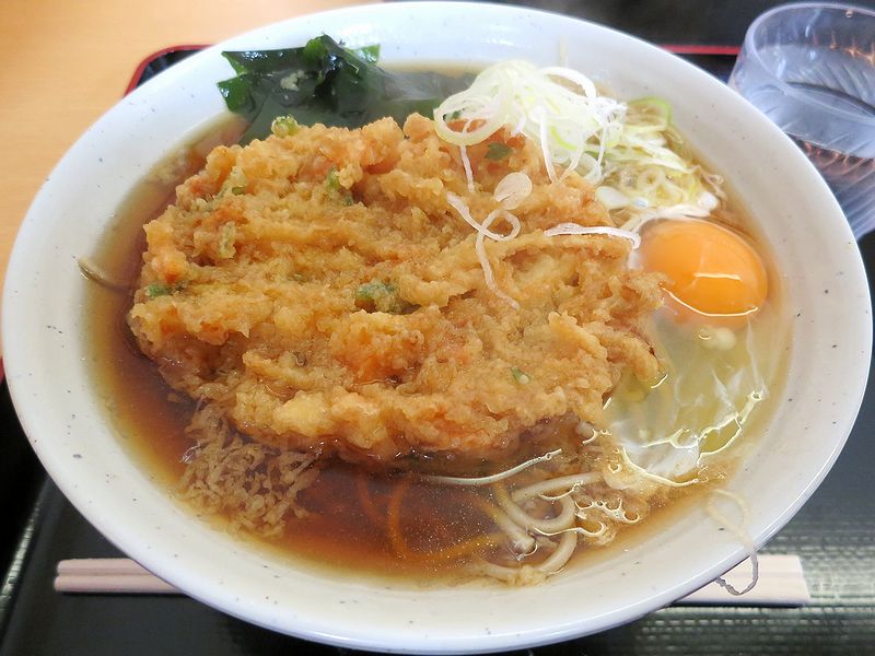 それでいただいたのは、東京駅でいただいた時と同じ、個人的定番の天玉そば。まずはつゆですが、対食いそばらしく若干ぬるめの温度に、濃いめな醤油の風味と適度な旨味、濃いめの塩気にアミノ酸的な旨味が、なんとも良いバランスです。また、スクエアな断面際立つ細めの蕎麦は、茹で麺だと思うのですが、香り・味共に悪くないかと。そして具のかき揚げはつゆに馴染みやすく、結構含まれるイカの小片が嬉しいです。