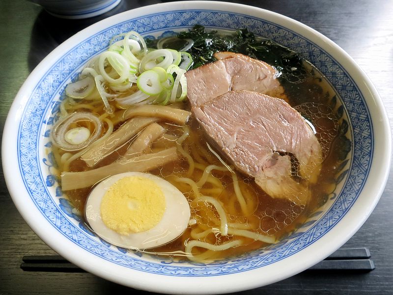 それでいただいたのは、こちらのお店ではとても久しぶり(約3年ぶりでした…。)となる醤油味の中華そば。もちろんチャーシューは2枚入りです。それで早速スープからいただけば、アッサリしているけど滋味深い、何とも良い感じのお味。大昔は煮干しが結構主張していたような記憶があるのですが、現在は何か一つが突出しているというわけではなく、じんわりじわじわと旨いです。また、中太の麺は、以前よりもポニョっと感が増したような気がしましたが、これは気のせいかも。そして具は、なんといっても肉厚だけどホロっとほどける感も有るチャーシューが白眉。それが50円増しで2枚(と言うよりも2切れと表現した方が適切か)になるのは何とも嬉しい限りです。あと、こちらのお店のラーメンに入る卵は長らくゆで卵(っていうか、ハッキリわかるような醤油味が付けられていない物)だと思っていたのですが、今回のはいい塩梅に醤油ベースの味が付けられているように感じました。