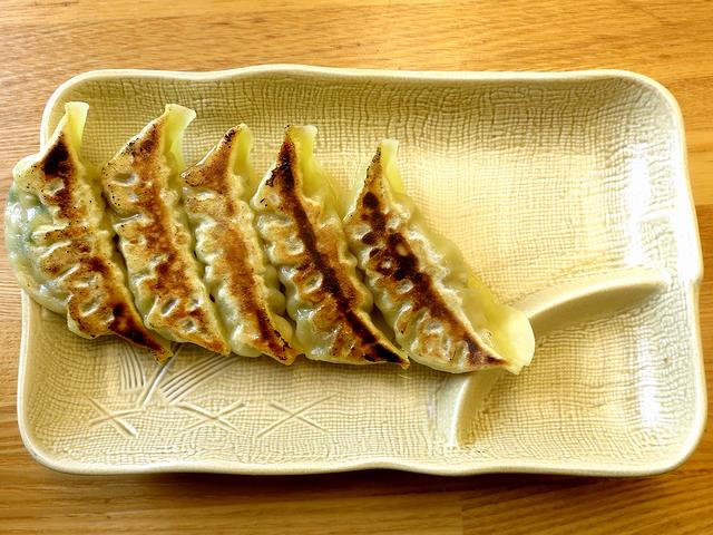 こちらは、一緒にいただいたもの。ラーメンはネギにしなかったくせに、こちらは風邪っぴき中=ニンニクが良いだろうということで、安易に頼んだというわけで。それで、だいぶ久しぶりにいただいたのですが、確かにニンニクは効いてるものの、暴力的という程では。中の餡は汁がしたたるとまではいきませんが、なかなかにジューシーで悪くないです。