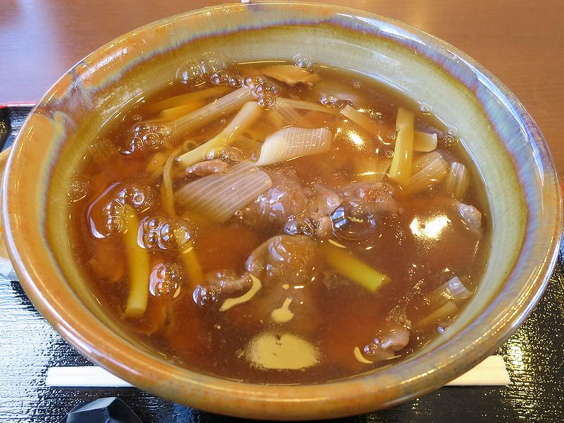 それでいただいたのはそばの方で、注文から暫くしてからの登場となりました。で、早速いただけば、トロトロアツアツのつゆからは、出汁の良い香りがして、味加減も丁度良いですね。また、蕎麦は細めのもので、蕎麦の香りがちゃんと感じられ、細いけど歯応えも有って、喉越しも悪くないです。そして餡掛けの中に入る具は、メインの八溝ししまるのお肉の他、ネギと水煮味付けキノコ。ししまるのお肉はしっかりとした下味でも付けられているのでしょうか?味が結構濃い目に感じられるのですが、個人的にはそれが良かったです。