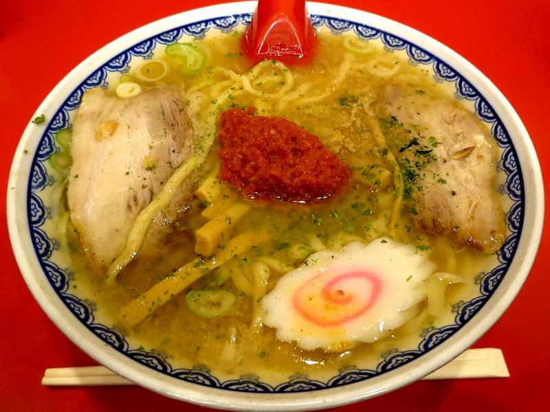 それでちょっと興味深いのが、この辛味噌ラーメンの成り立ち。詳しくはお店や新横浜ラーメン博物館の公式サイトに載っているのですが、昭和の中頃、当時はお店で醤油味の中華そばしかお店で出していなかったそう。そこで残ったスープを自宅に持ち帰り、味噌を入れて食べていたのがその起源で、更に特徴的なのは、そこに唐辛子とニンニクからなる辛味噌を加えたことによって、赤湯辛味噌ラーメンが唯一無二の存在になっています。で、これが札幌で味噌ラーメンが誕生した(ちなみにその元祖とされているお店がこちら)のとほぼ同時期というのが、大変興味深いですね。