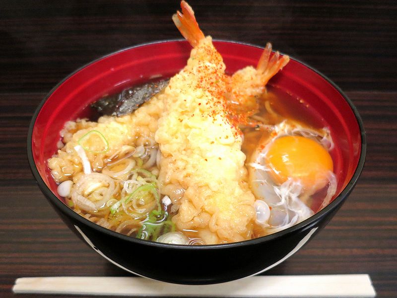 えび天そば 640円 + 単品生たまご 60円