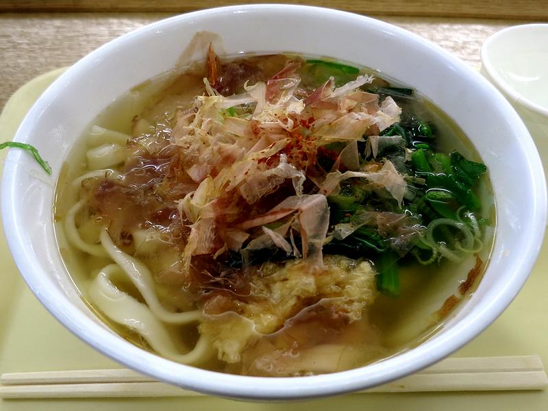 こちらは、事前にネットで調べた時わかったのですが、某ケンミンSHOWにも取り上げられたという品だそうで。で、つゆを一口啜れば、軽くトロミの付いた熱々のもの。そこにかき玉とたっぷりのトウモロコシが入っています。味付けは濃いめだと思うのですが、個人的にはこれくらいが丁度良いというか。またウドンは、当然のことながら釜揚げうどんとは食感が違うのですが、こちらはこちらで良い感じです。あと、トウモロコシをすくうため、穴あきレンゲが付いていたのも嬉しいですね。
