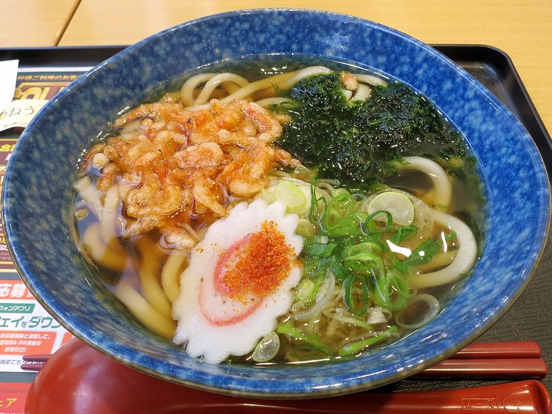 それで食券を購入したのは券売機のボタンに「新商品」と書かれていたこちらの品。ちなみにこちらの券売機、購入ボタンの上に商品の写真があるのがとてもわかりやすくて良いですね。で、まずはつゆですが、醤油色の濃さからしてお店のウェブサイトで謳っている「関西風」というよりも、個人的には当地らしいと思ったのですが、ダシ感もちゃんとあり、塩加減もしっかりとしていてこれがなかなか。うどんは、「さぬうどん麺」と謳っていますが、ツルッとした食感と、強化されているとは思いますがさほどあからさま過ぎないコシが悪くないです。そして具は、品名のとおり生海苔が良い風味。また、桜エビの天ぷらも香ばしさと油のコク、更にはご当地らしさを加えていると思います。