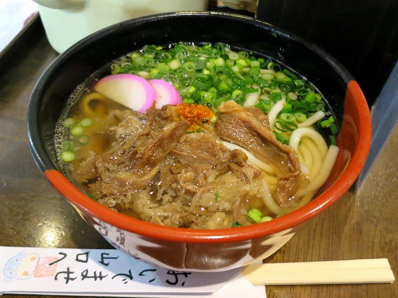 そこでいただいたのがこちらの肉うどん。つゆはとっても良い塩梅で、旨味もしっかりと感じられてこれがなかなか。またうどんは細めですが、茹で麺の自然な啜り心地と食感がこれもまた。(個人的に、茹で麺大好きです。)そこに具の煮た牛肉の味も加われば、もう。