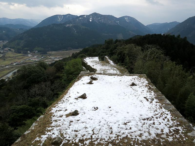 で、その感想なのですが、一言で言って「素晴らしいっ!!」。現存や復元建築物こそありませんが、リフトで登った山頂部に築かれた、数々の曲輪とそれを取り囲むテクニカルな形状の石垣が、個人的な好みにものすごく合っていました。ただ一つ残念だったのは天気が悪く、そこから下界の眺めを堪能できなかったのですが、ここはまた、季節を変えて是非とも来たいですね。その時は、雰囲気のある城下町の散策も、併せてしてみたいと思います。