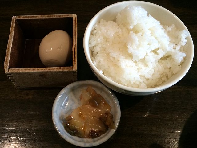 煮玉子 100円 と 半ライス 100円