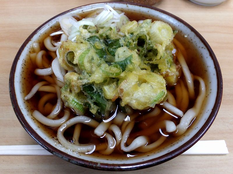 注文後、ちょっとだけ待ってから登場したそのうどん。まずは温かいものですが、うどんはちゅるとした瑞々しさとモチモチ感が同居するもの。またつゆは、ダシ感よりも醤油の勝ったスパルタンなタイプ。そこで上に載ったかき揚げがいい仕事をするというか、つゆに適度なコクと食べ応えを加えてくれます。ちなみにこのかき揚げ、食感はわりとふわっとしていますが、つゆとの馴染みは結構良いタイプ。白ネギがメインの具材ですが、所々に見えるピンクっぽい色は桜エビでしょうか?