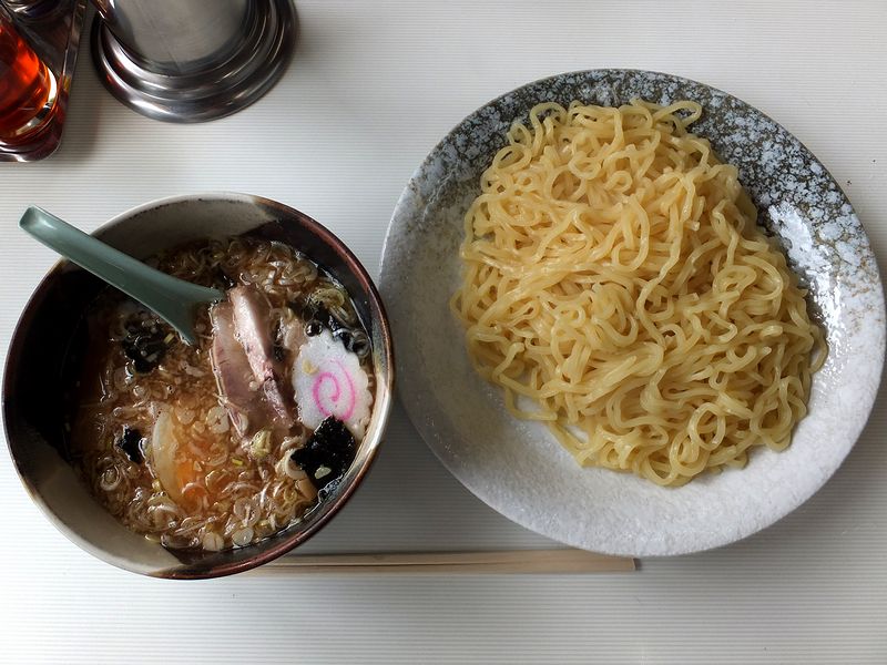 こちらのお店にお伺いするようになって暫く経ちますが、時代屋さんというと、どうしてもその美味しい煮干し味のスープを堪能したくて、注文はラーメン類ばかりでした。それで今回初めて、つけめんをいただいてみたのですが、その味の印象は、こちらで個人的に一番好きな「名代にぼし正油」ど同様というか、そのつけ麺バージョンといった感じ。もちろん、つけ汁はちゃんとそれ用にアレンジが施され、また麺も茹でた後締めることによってこちらの麺で特徴的なプリサク食感が増しているのですが、一番印象の残るのは、煮干しの美味しいところだけを抽出したかのような味わい、そして余韻です。しかも、スープ割りお願いしたところ、アツアツのスープをたっぷりと注いでくれ、さらにこちらの美味しい煮干し味を堪能できたというか、ひょっとしたら、ラーメン以上に堪能できたかもしれません。