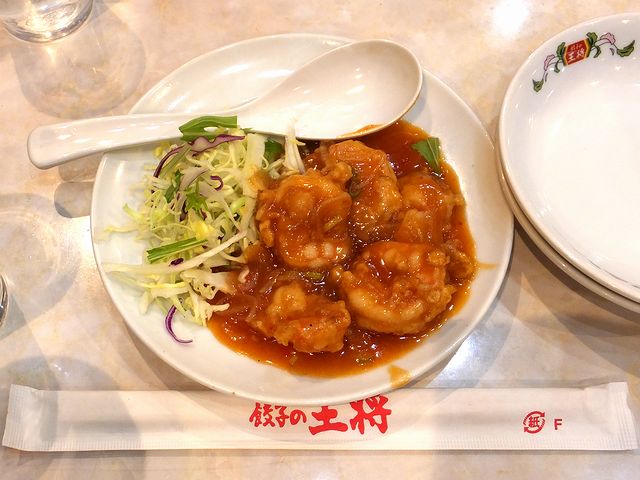 最近、王将に来ていなかったというか、これまでほとんど来たことが無かったので存在を知らなかったのですが、こちらには「ジャストサイズ」という通常より少なめサイズの品があるんですね。これはこういう時、色々頼めて良いですねぇ。で、エビチリですが、個人的な感覚では甘味控えめなスパルタン系というか。あと、プリプリの海老は、結構大きかったです。